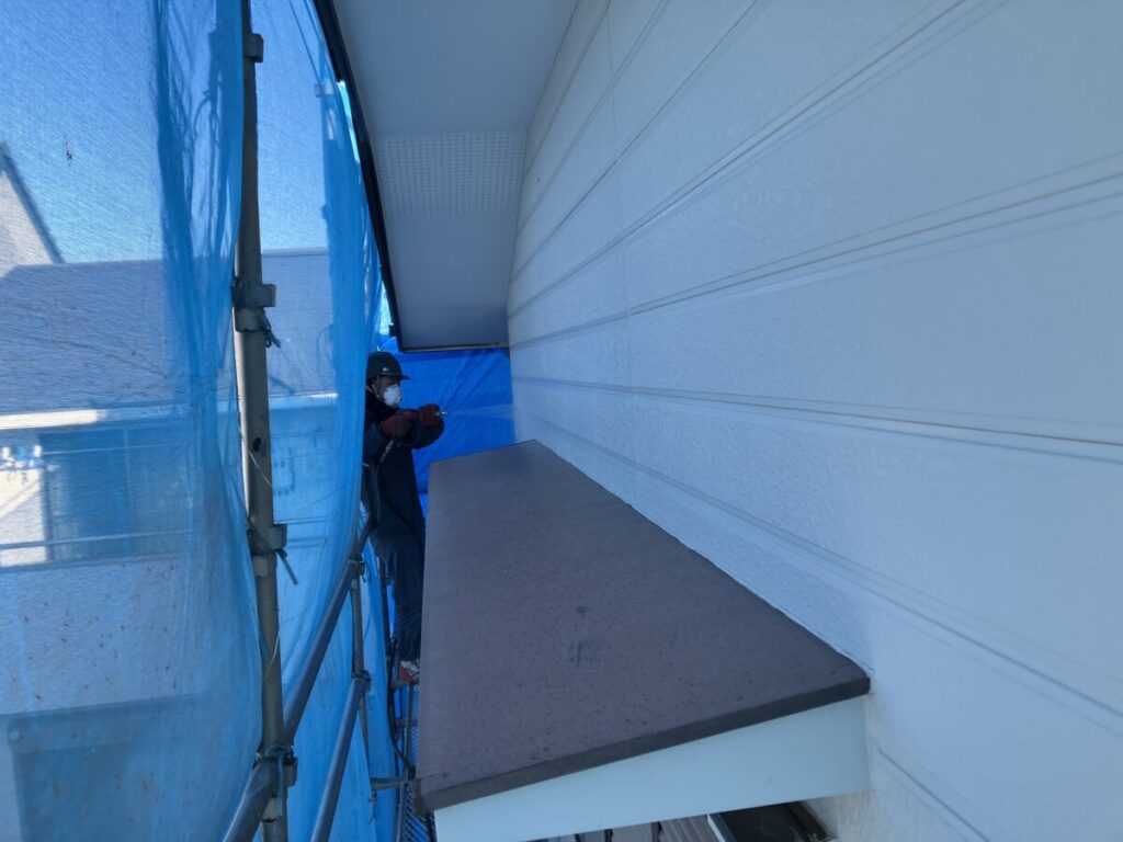 外壁窯業系サイディング洗浄工事施工中です。