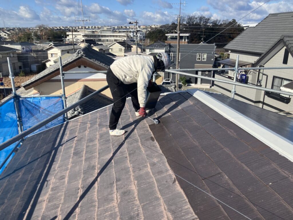 下塗り施工中