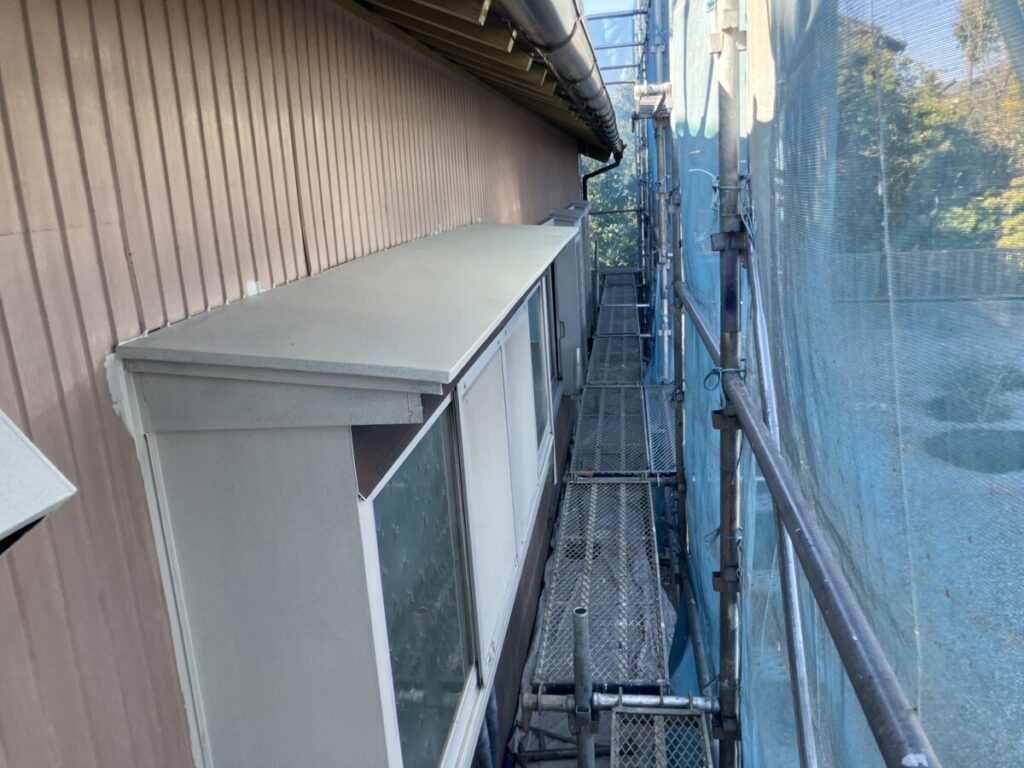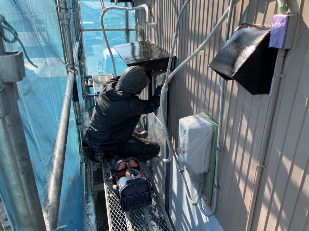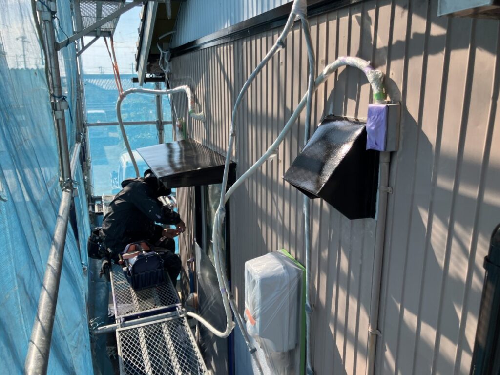 養生施工後、外壁トタン部分錆止めを施工していきます。