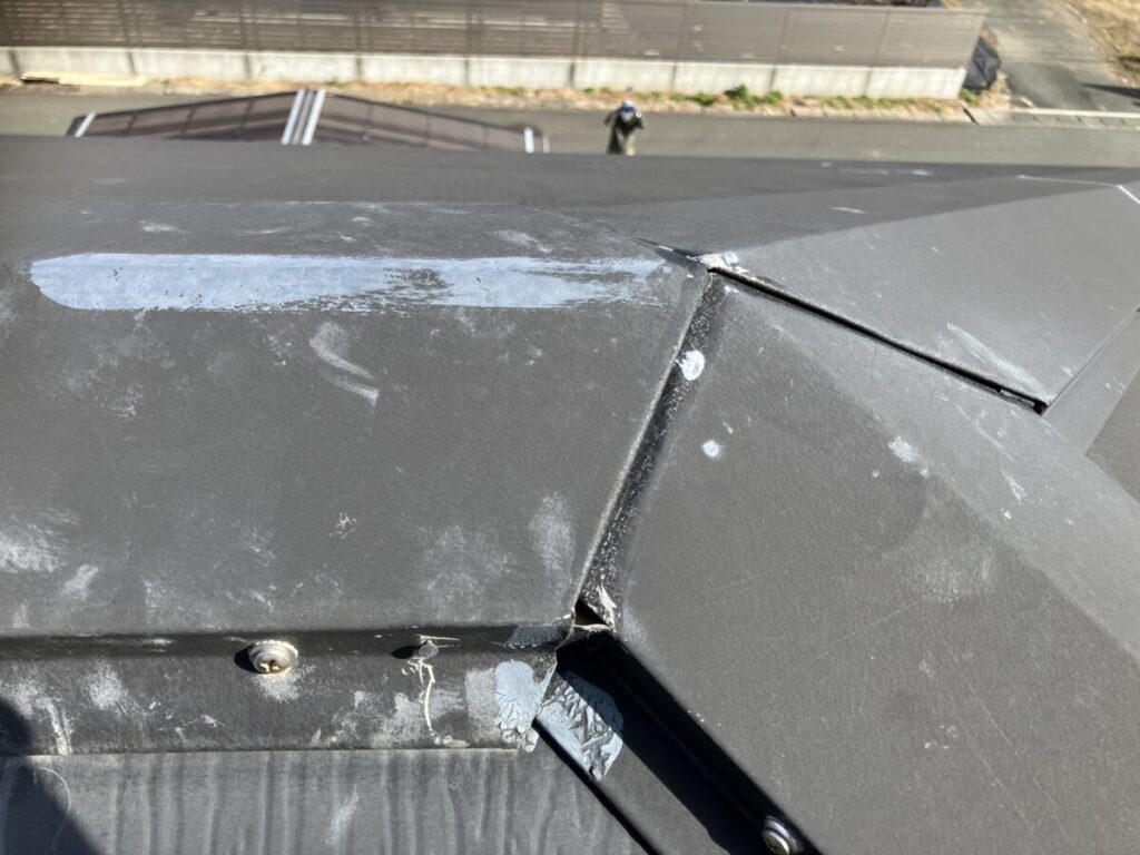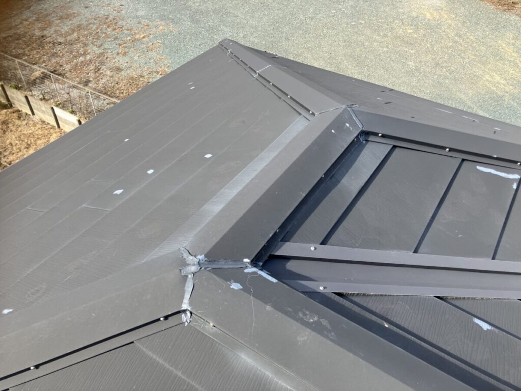 棟板金の施工時の嚙み合わせが甘くて隙間に凹みがあるのに完了したいる状態だったので
