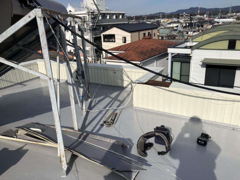 屋上防水工事後、パラペット部分角波トタン貼り後、