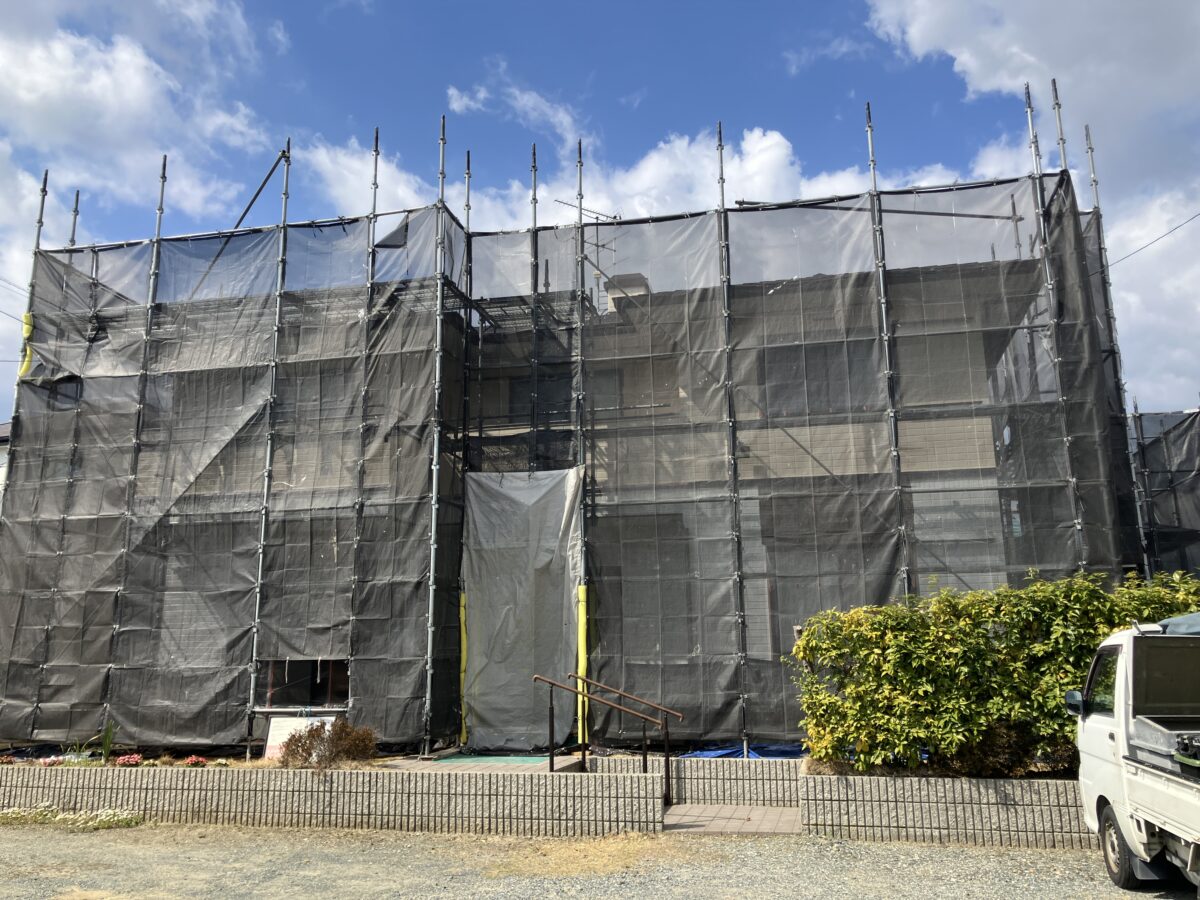 今日も引き続き浜松市浜名区尾野S様邸の外壁塗装工事施工中で