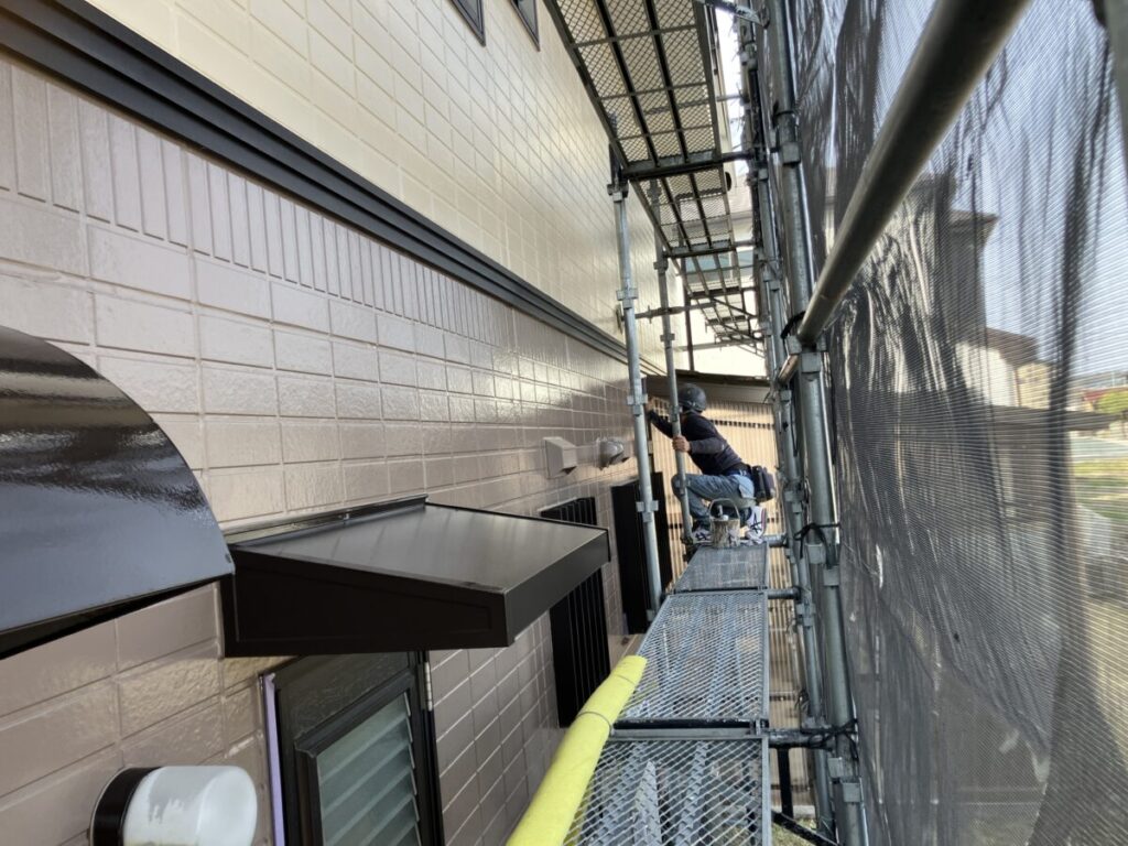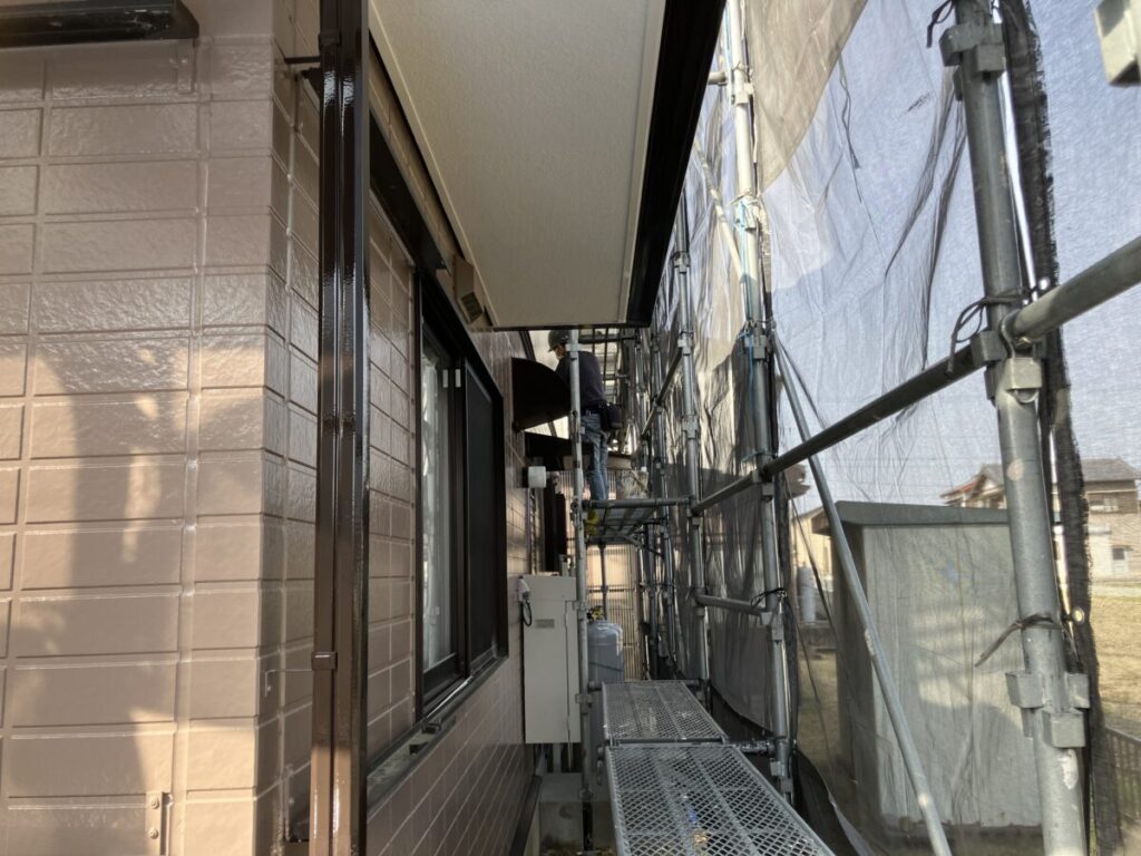 外壁は、上塗りまで終わっていて外壁塗装としてはほぼ「仕上げ段階」に入っています。