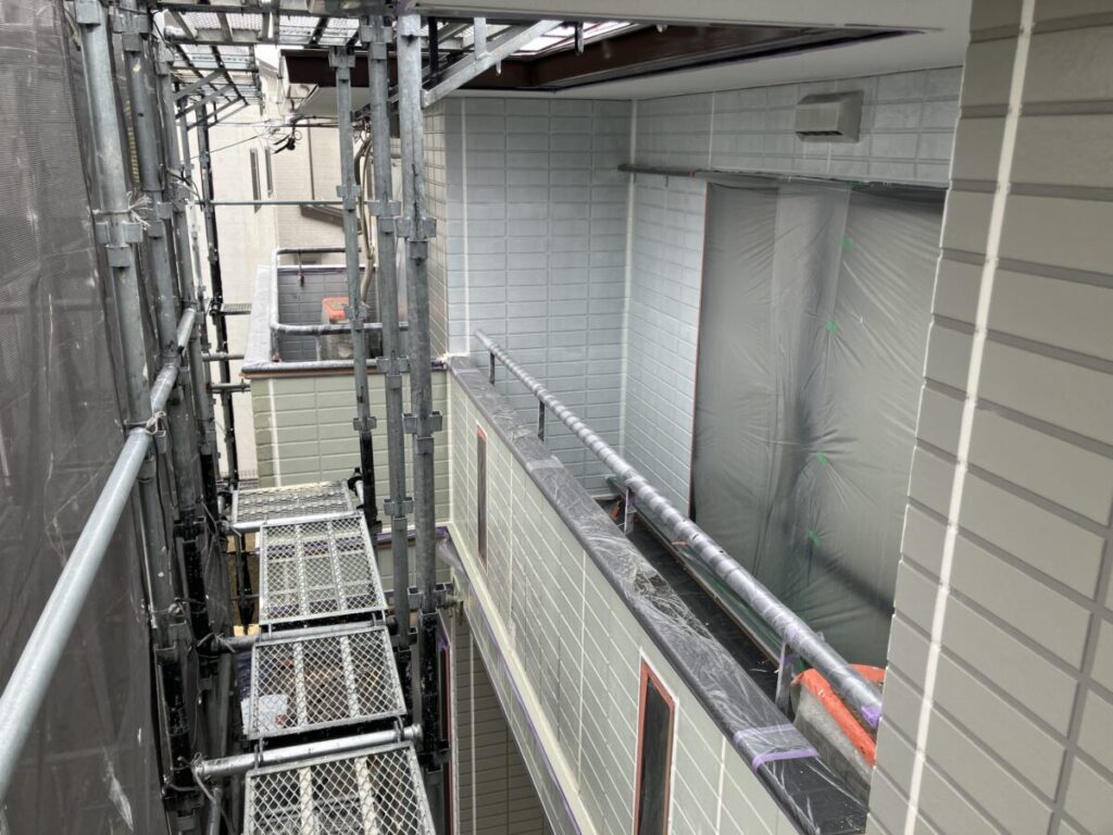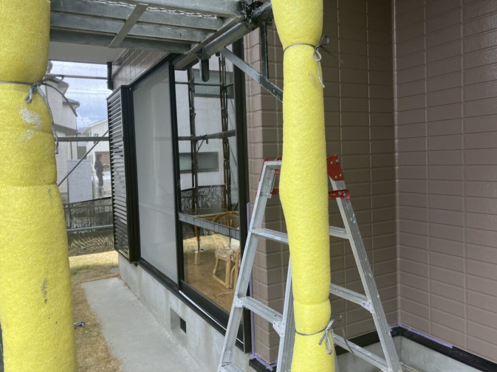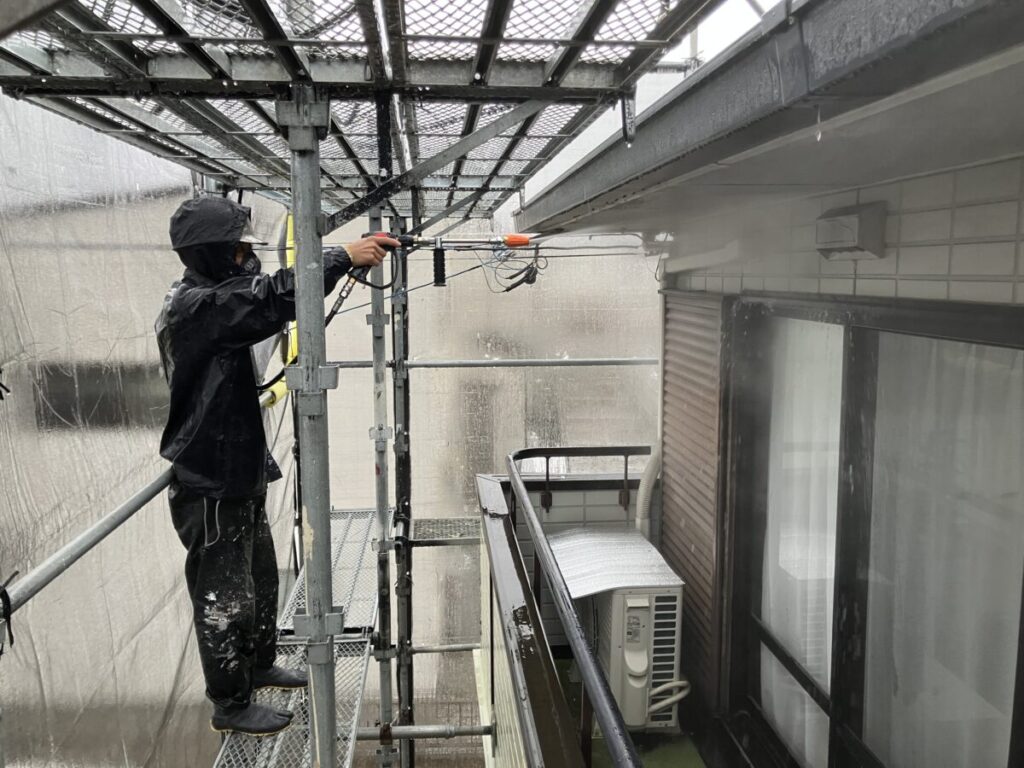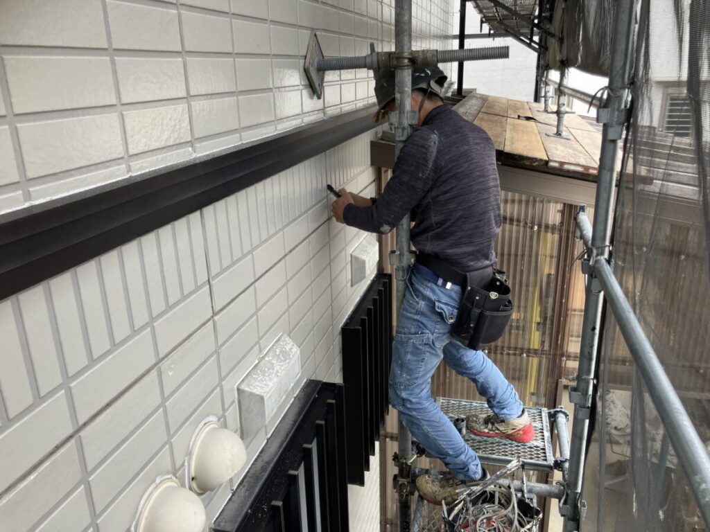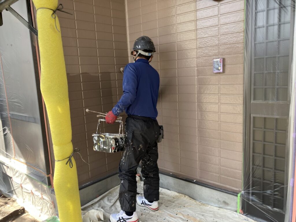 シーリング施工後、外壁の状態があまりよくないので下塗りとしてシーラーを施工します。