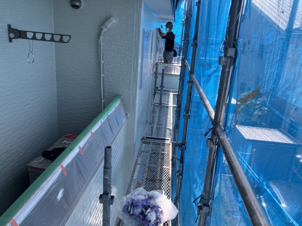 2日ほど前に外壁の中塗りが完了し、昨日は上塗りまで無事に仕上がりました。現在は養生の撤去作業を進めているところです。養生を外すと、いよいよ全体の仕上がりが見えてくるため、現場としても一つの節目の工程になります。