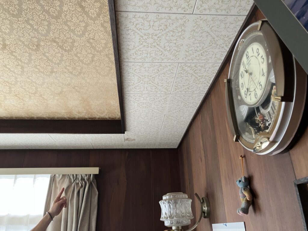 まずお客様に雨漏りの現状を伝えて頂き確認した所玄関上に雨漏りの跡が確認され、「他の場所も気になる」とのことで追加で点検させていただいたところ、別箇所でも雨漏りが発生している状況でした。