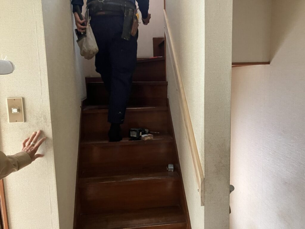 H様邸では、1階から2階へ上がる階段にはすでに手すりが設置されていましたが、2階から3階へ上がる階段には手すりがなく、安全面を考慮して今回新たに設置をご希望いただきました。