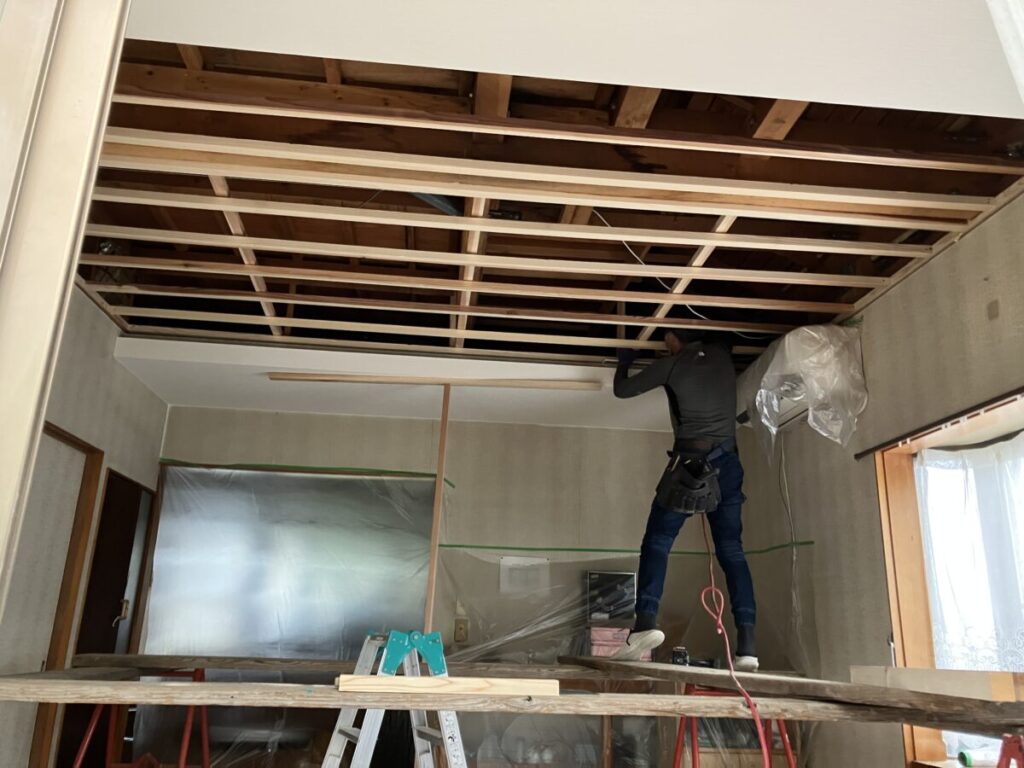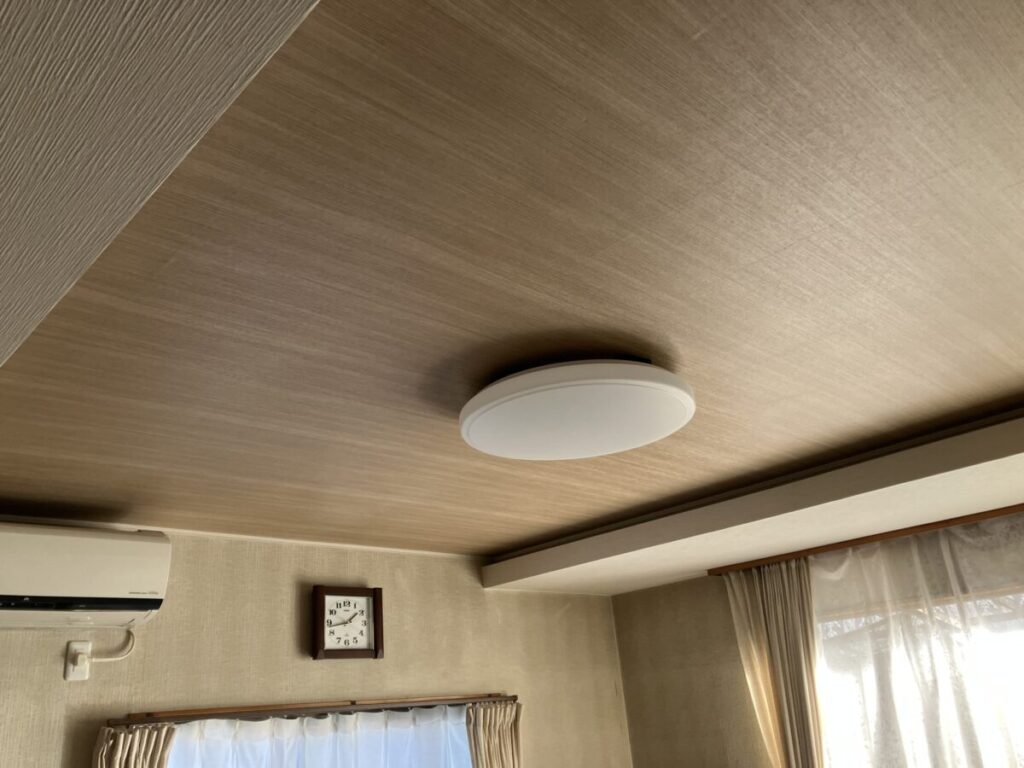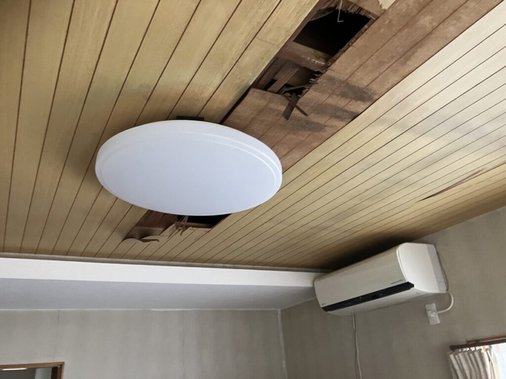 天井雨漏り跡、天井張り替え・クロス工事が完了しました。