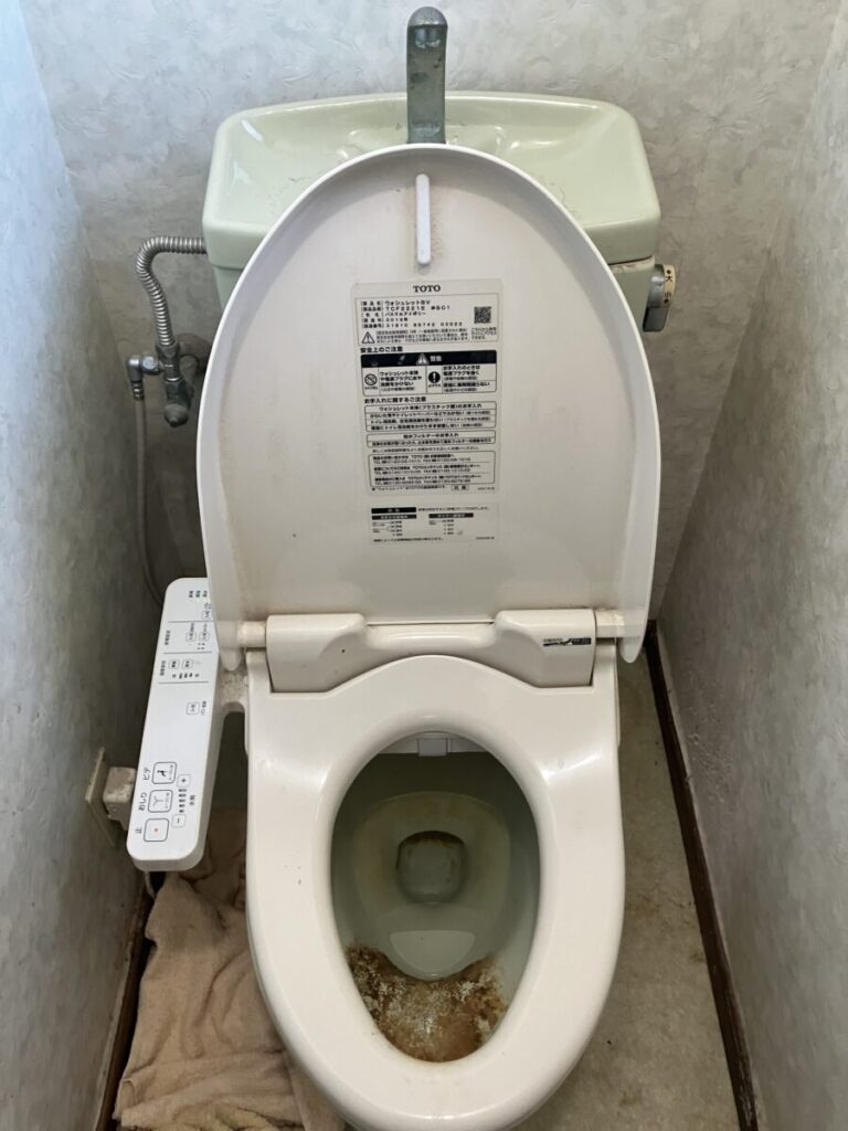 袋井市太田H様からトイレから水漏れすると連絡あって