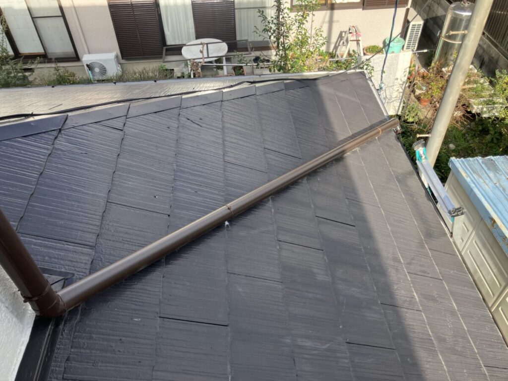 屋根上に這っているナショナルの竪樋を取付工事をしました。