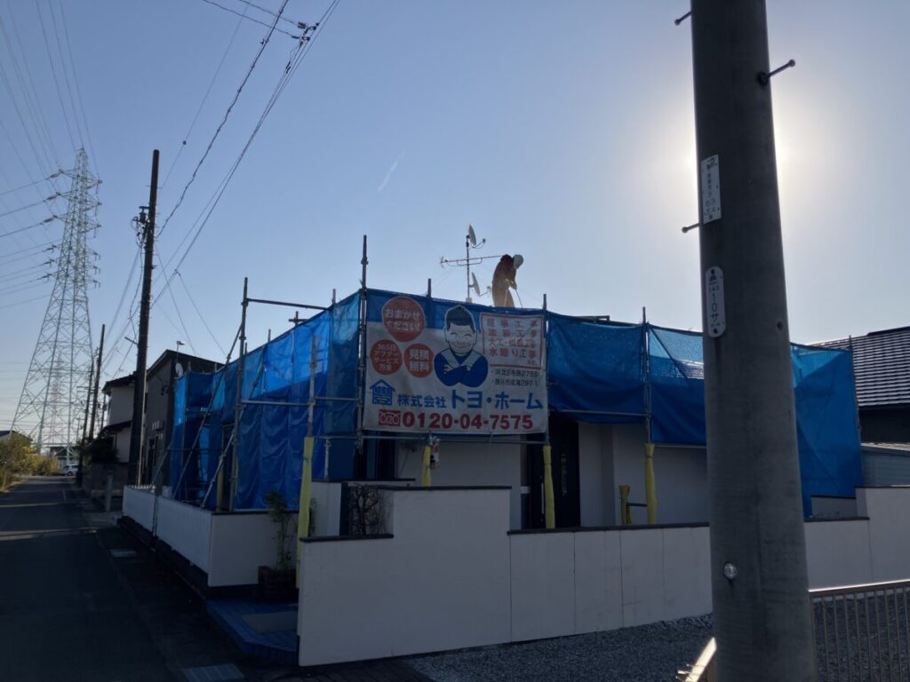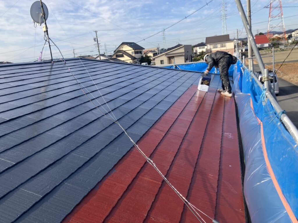 先程で、浜松市浜名区中瀬K様邸の屋根塗装工事が