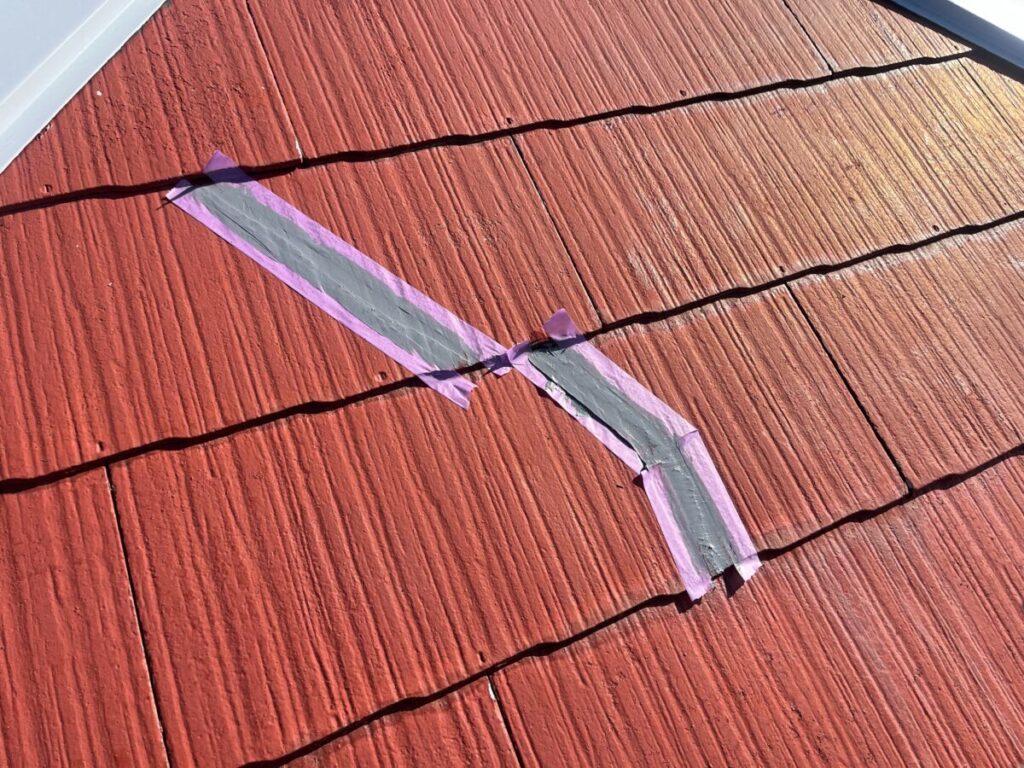 クラックシーリング後、下塗り後、中塗り施工中です。