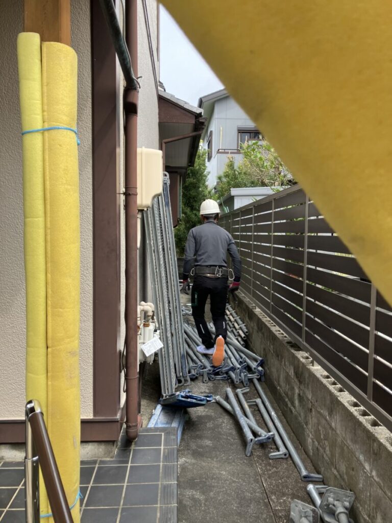 こんにちはトヨ・ホームの坪井です。 今日から浜松市浜名区善地N様邸の外壁からの漏水補修工事前の 仮設足場施工中です。 浜松市漏水補修工事、浜松市浜名区漏水補修工事、浜松市浜名区雨漏り補修工事は、トヨ・ホームへ 社長ブログはこちら -