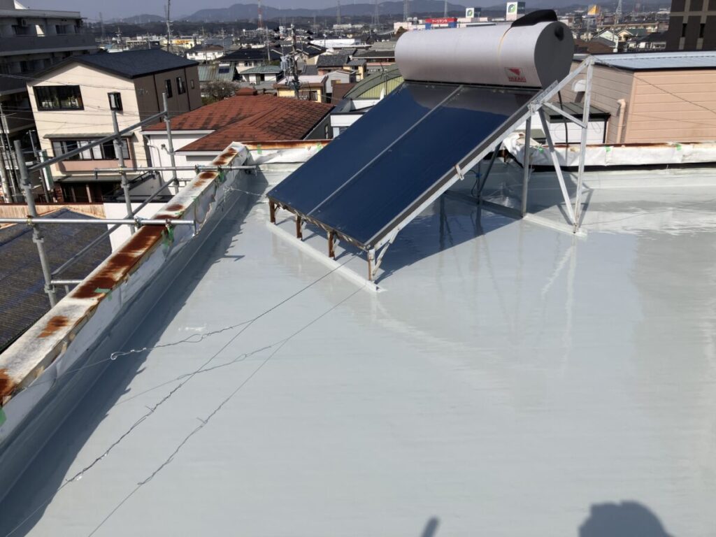 こんにちはトヨ・ホームの坪井です。今日も引き続き浜松市浜名区貴布祢H様邸の雨漏り修理工事で屋上防水工事防水工事施工中一昨日の時点でメッシュシート後、ウレタン防水一層目完了してあります。 メッシュシート後 ウレタン防水一層目完了後 今日の午後... -