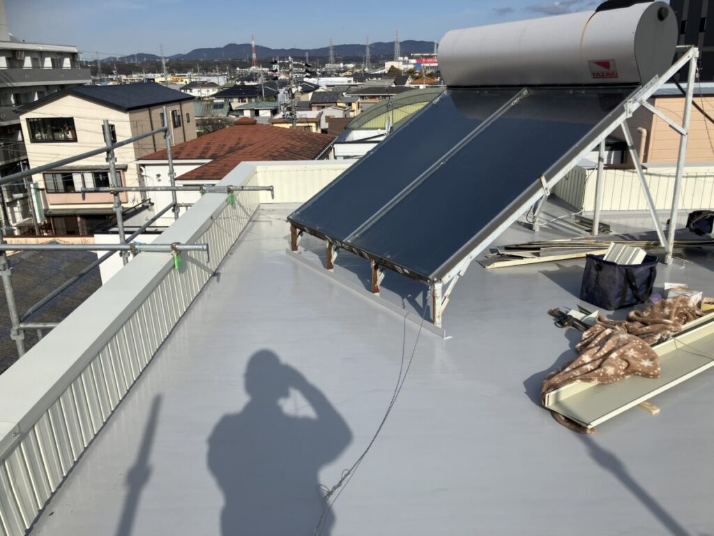 今日から浜松市浜名区貴布祢H様邸の雨漏り修理工事で屋上防水工事前の既存板金撤去施工中です。 社長ブログはこちら