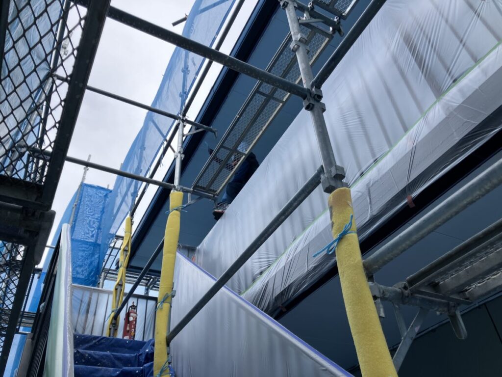 こんにちはトヨ・ホームの坪井です。今日から浜松市中央区豊岡町Y様邸の屋根葺き替え工事前の仮設足場施工中です。 あと少しで仮設足場完了します。来月初旬から瓦を捲っていきます。 社長ブログはこちら -
