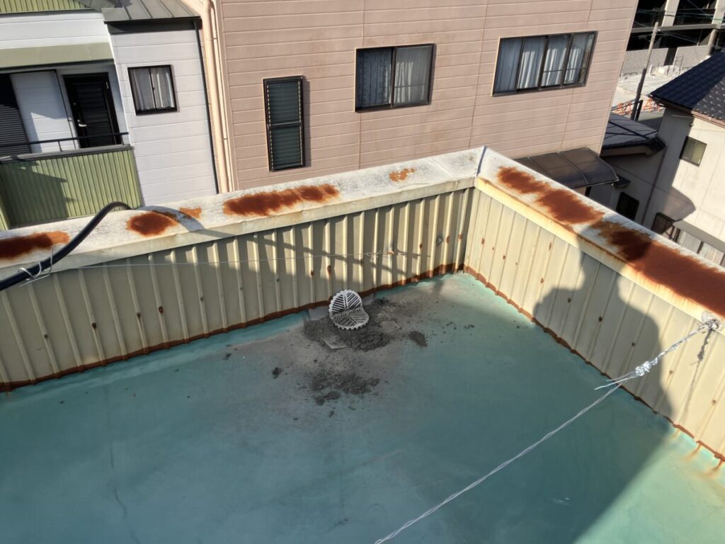 今日から浜松市浜名区貴布祢H様邸の雨漏り修理工事で屋上防水工事前の既存板金撤去施工中です。 社長ブログはこちら -