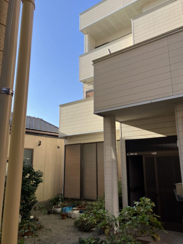 こんにちはトヨ・ホームの坪井です。今日も引き続き袋井市岡崎K様邸の外壁塗装工事で軒天塗装工事施工中です。 軒天は、前回と同じような色なのでちょっと分かりにくいですね 社長ブログはこちら -