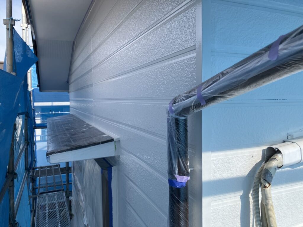 こんにちはトヨ・ホームの坪井です。今日も引き続き浜松市浜名区内野台Y様邸の外壁塗装工事で雨樋関西ペイントコスモマイルドⅡで上塗り施工中です。 外壁上塗りも完了しています。 社長ブログはこちら -