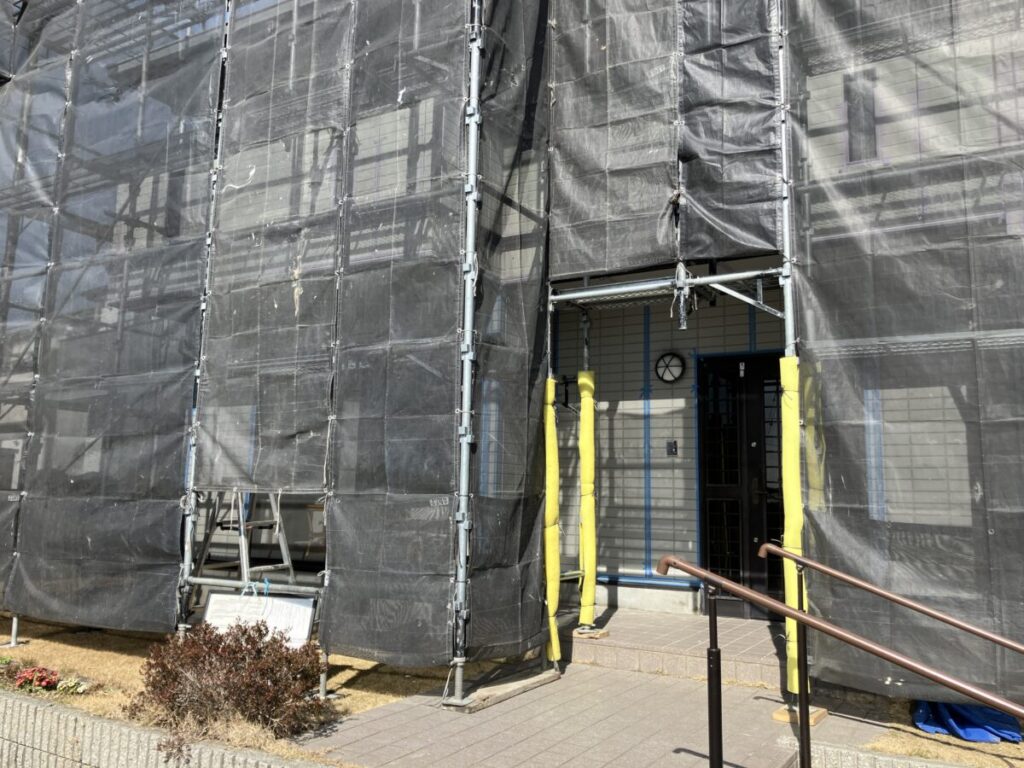 こんにちはトヨ・ホームの坪井です。今日から浜松市浜名区尾野S様邸の屋根・外壁塗装工事前の架設足場工事施工中です。 明日から洗浄工事施工していきます。 社長ブログはこちら -