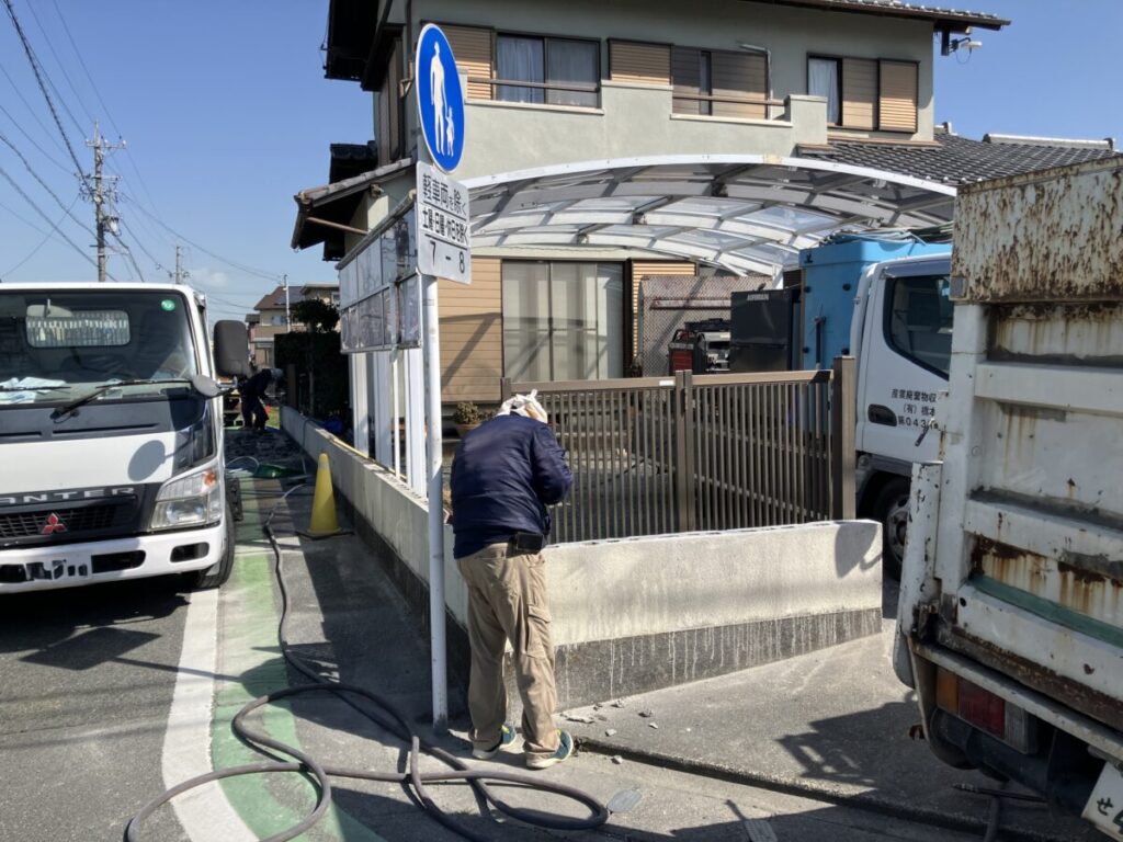 こんにちはトヨ・ホームの坪井です。今日から浜松市中央区積志町M様邸の既存塀一部撤去施工中です。 一部塀撤去後、フェンス工事を施工していきます。 社長ブログはこちら -