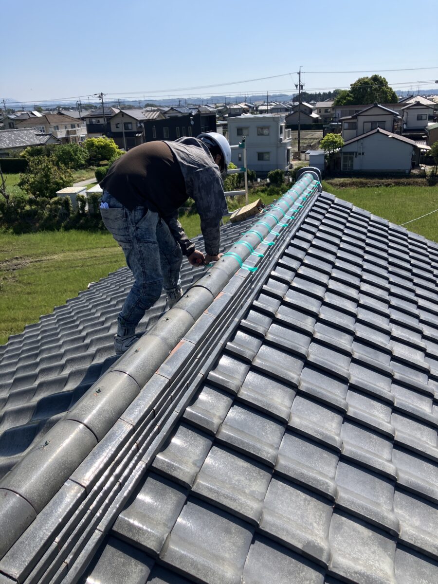 昨日で、浜松市中央区中郡町M様邸の屋根修理工事で棟瓦瓦止め工事に