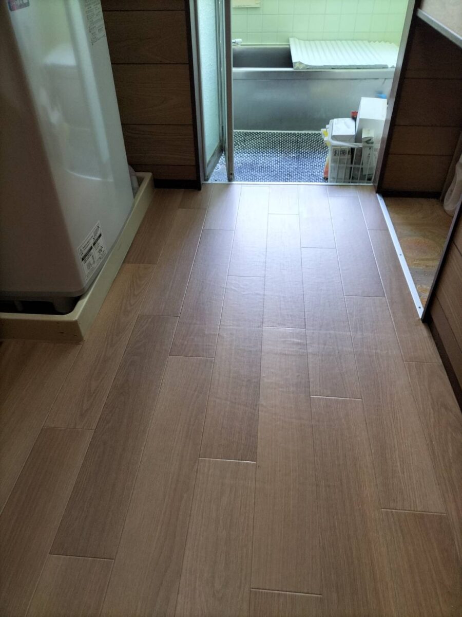 昨日で磐田市加茂H様邸の脱衣所床重ね貼り工事完了しました。施工前
