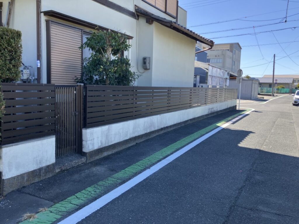こんにちはトヨ・ホームの坪井です。今日も引き続き浜松市中央区積志町M様邸の外構工事で既存塀一部カットフェンス取付工事施工中です。 社長ブログはこちら -