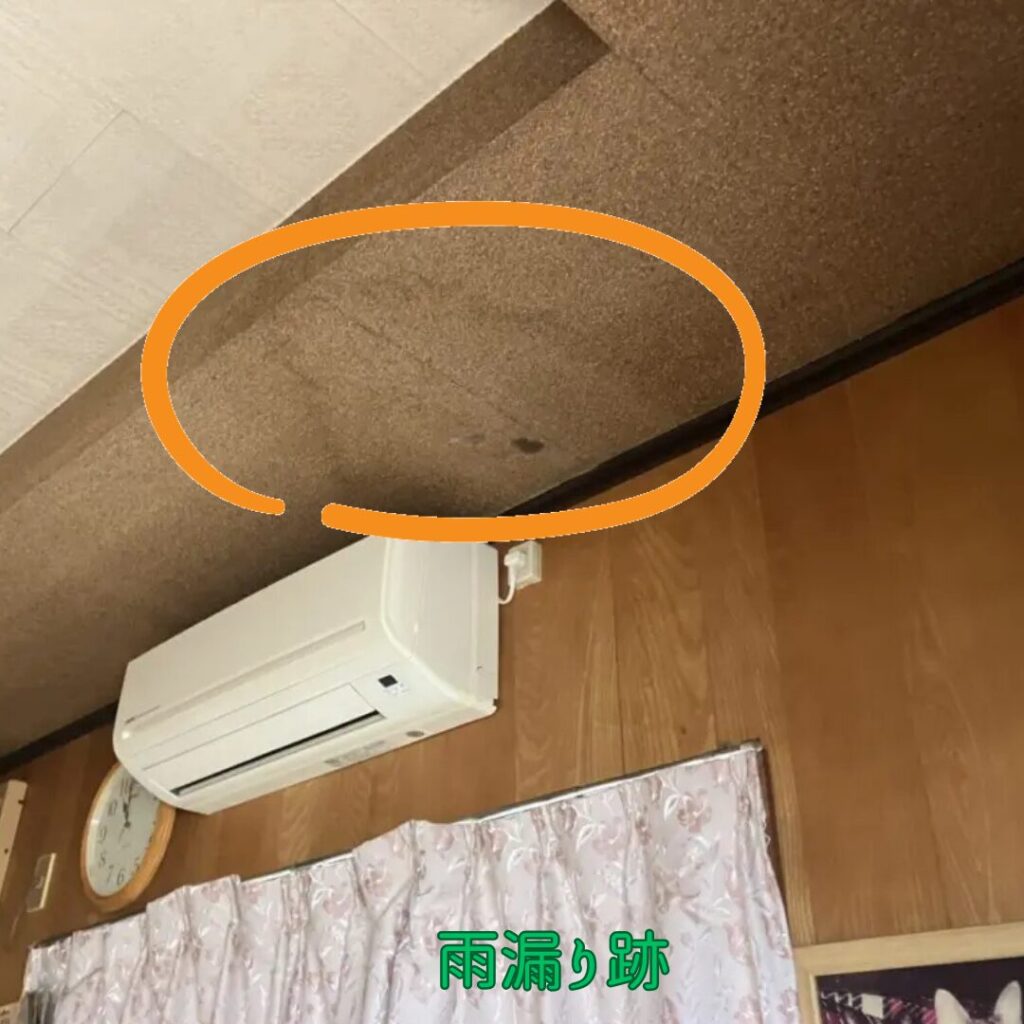 雨漏りしている箇所で雨漏り跡を確認させていただき、