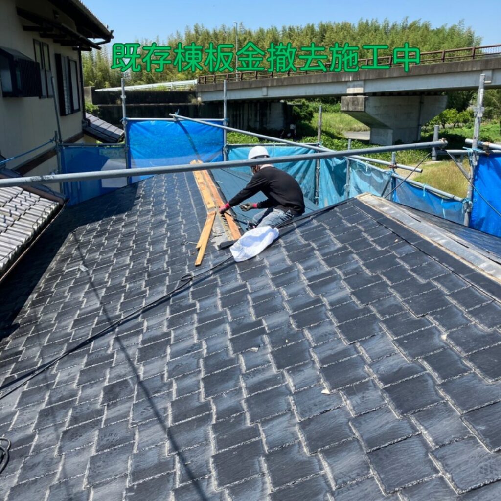 棟板金撤去・ルーフィング張り・役物取り付け