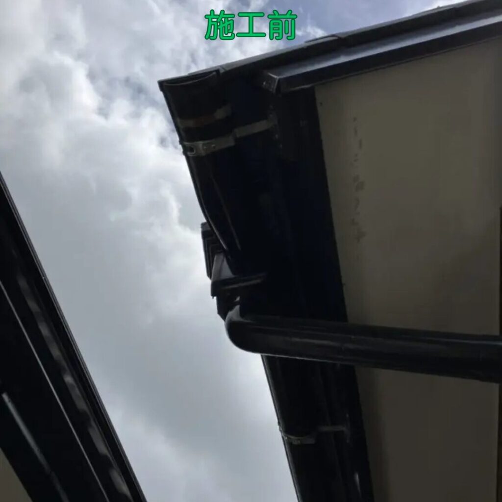 瓦がずれて、軒樋が押されて変形しているので、軒樋一部取替工事も施工させていただきました。