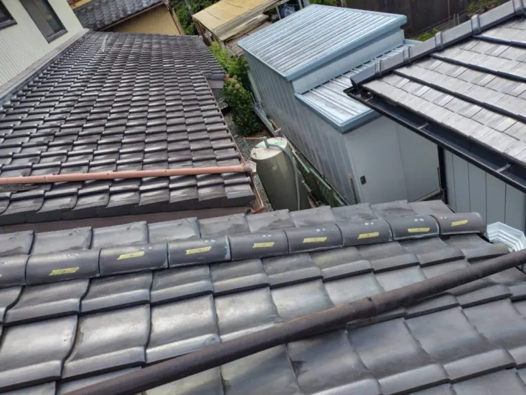 瓦がずれて軒樋が押されて変形している部分が一部ありました。